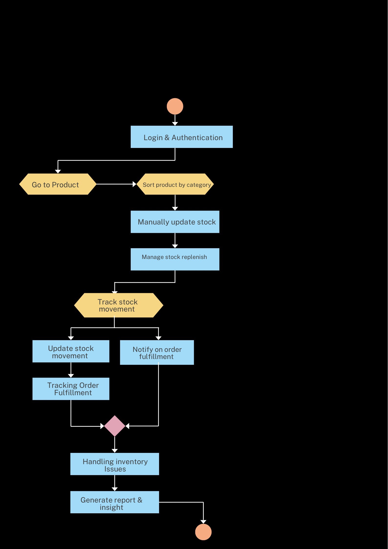 - Created user flows for order management, inventory updates, and sales tracking.