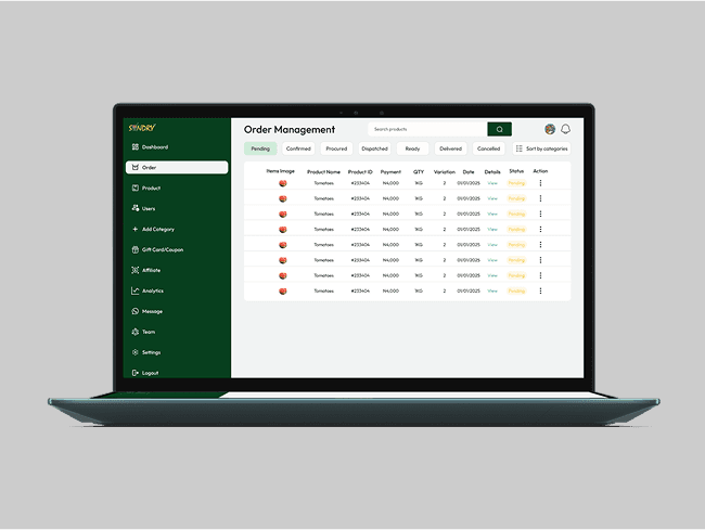 Objective: Design an intuitive admin dashboard to help Sundryagro efficiently manage their operations, inventory, orders, and customer insight.